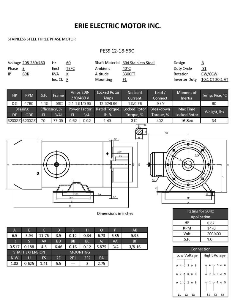 • 208-230/460V or 575V 60Hz, 200/400V 50Hz