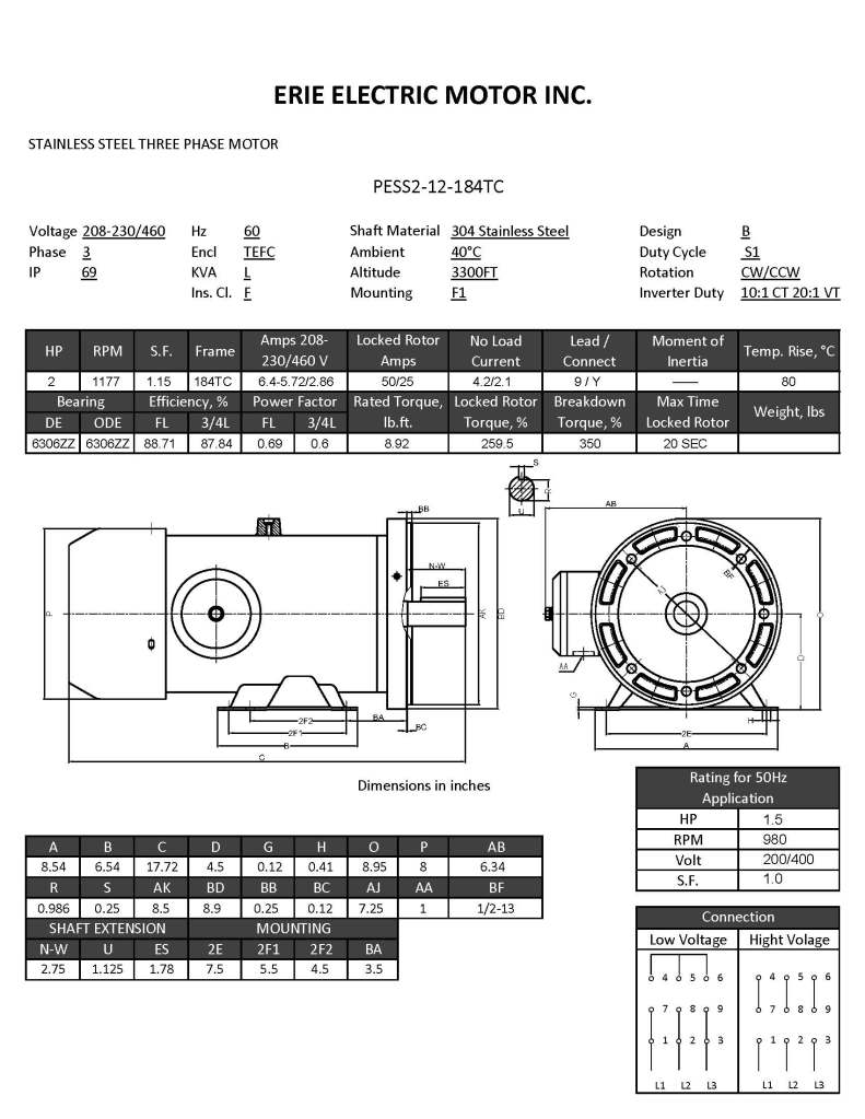 • 208-230/460V or 575V 60Hz, 200/400V 50Hz